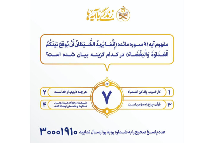 ادامه مطلبسوال روز هفتم مسابقه «زندگی با آیهها» در هرمزگان منتشر شد!
